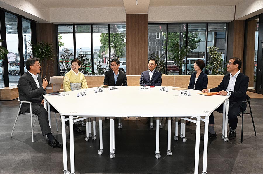 起業家発掘プロジェクト「群馬イノベーションアワード(GIA)2025」(上毛新聞社主催、田中仁財団共催)の実行委員と協賛社のトップらが「本業と地域課題の接点」をテーマに語り合う座談会。2回目は6人が、地域課題の解決が活性化につながるだけでなく自社の収益向上に役立つこと、共に成長していく大切さなどを再確認した。